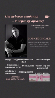 Эта книга о том, как правильно вести себя на первом свидании с мужчиной, о поцелуях, взаимных отношениях и чувствах.Вам будет интересно узнать об отношениях с партнёром в браке и особенностях поведения мужчин. Вы окунётесь в гармонию человеческих отношений и красоту женского тела.Я подскажу вам, как сохранить постоянное взаимное влечение и страсть.Приятного прочтения!