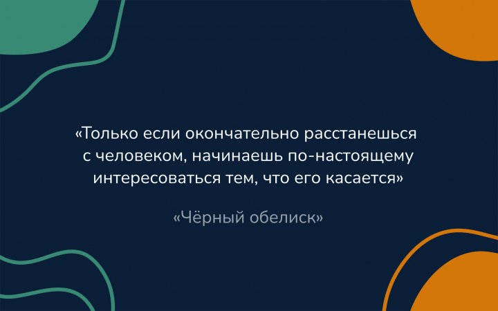 - «Только если окончательно расстанешься с человеком, начинаешь по-настоящему интересоваться тем, что его касается». «Чёрный обелиск»
