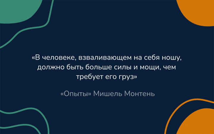 - «В человеке, взваливающем на себя ношу, должно быть больше силы и мощи, чем требует его груз». «Опыты», Мишель Монтень