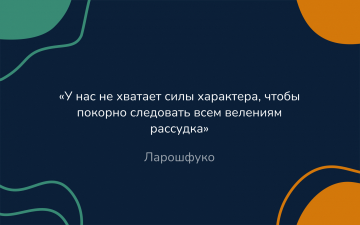 - «У нас не хватает силы характера, чтобы покорно следовать всем велениям рассудка». Ларошфуко